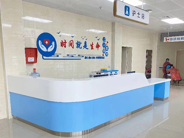 台面:可采用不锈钢,人造大理石,石英石,亚克力人造大理石等。人造石具有天然石粉、高性能树脂和天然色素,通过真空浇注或模压成型的矿物填充高分子复合材料(简称固体面材或固体板材,俗称“人造石”)。表面无气孔,具有极强的耐高温、耐污、耐酸碱、耐腐蚀、耐磨性能,使细菌无处滋生。对烧痕、灼痕极易修复,是一种非常卫生易清洁的材料,可塑性强,可以无缝拼接。材料环保,配套设计更人性化。这些都是选购者们对护士站工作台更加关注的地方。