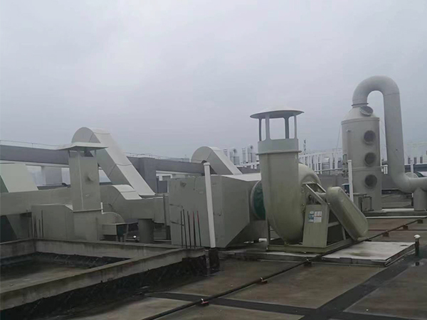 1、活性炭吸附装置,即主风管到达楼顶后连接活性炭吸附装置再连接离心风机,净化后的尾气排出去。