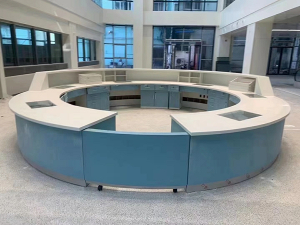 台面:可采用不锈钢,人造大理石,石英石,亚克力人造大理石等。人造石具有天然石粉、高性能树脂和天然色素,通过真空浇注或模压成型的矿物填充高分子复合材料(简称固体面材或固体板材,俗称“人造石”)。表面无气孔,具有极强的耐高温、耐污、耐酸碱、耐腐蚀、耐磨性能,使细菌无处滋生。对烧痕、灼痕极易修复,是一种非常卫生易清洁的材料,可塑性强,可以无缝拼接。材料环保,配套设计更人性化。这些都是选购者们对护士站工作台更加关注的地方。