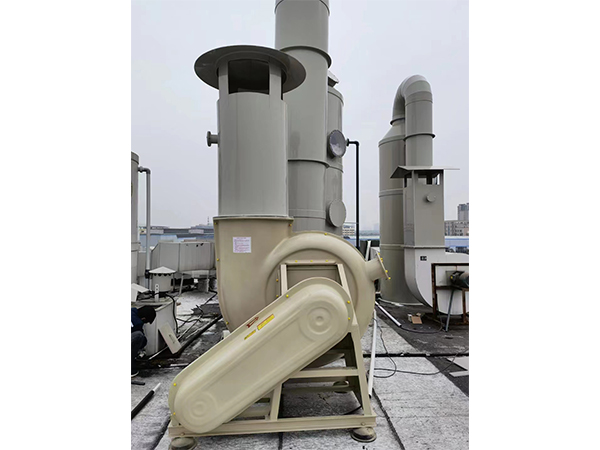 3、喷淋塔,即主风管到达楼顶后连接喷淋塔后再连离心风机,净化后的尾气气排出去。
